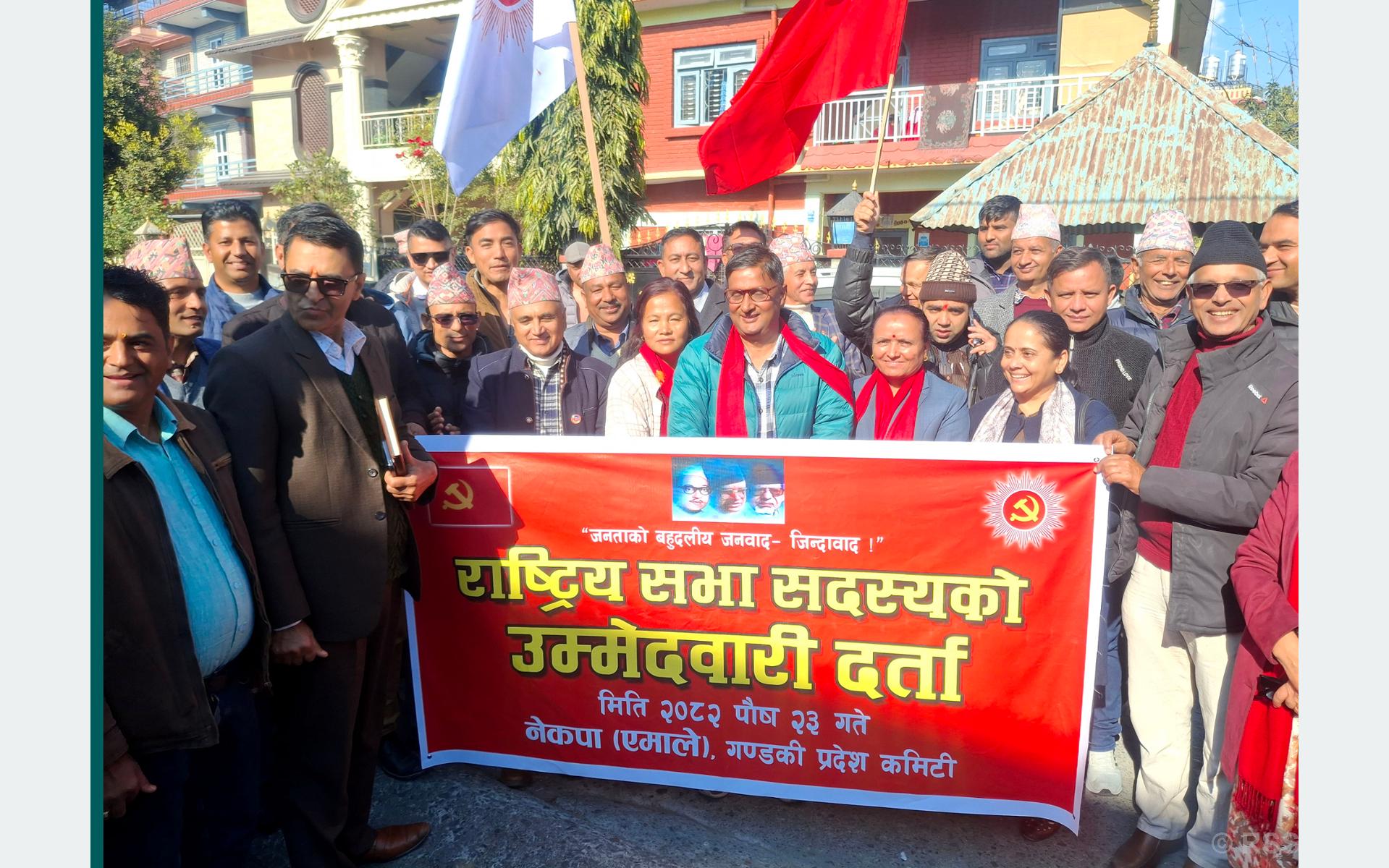 गण्डकी प्रदेशका मुख्यमन्त्री सुरेन्द्रराज पाण्डे, नेकपा एमालेका सचिव खगराज अधिकारीसहितको टोलीले निर्वाचन अधिकृतको कार्यालय पुगेर उम्मेदवारी दर्ता गराएका हुन् ।त्यसैगरी नेपाली कम्युनिष्ट पार्टीका तर्फबाट कपिल लामा(मनाङ) र गोमा घिमिरे लुइँटेल (कास्की)को उम्मेदवारी परेको छ भने राष्ट्रिय जनमोर्चाकातर्फबाट लक्ष्मी बास्कोटा (बागलुङ), शङ्कर बराल (कास्की)को उम्मेदवारी परेको छ ।